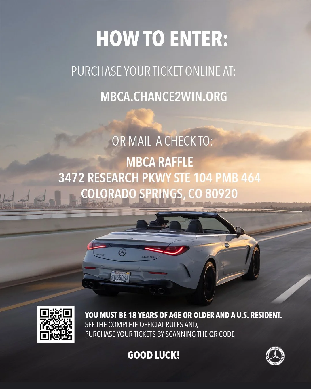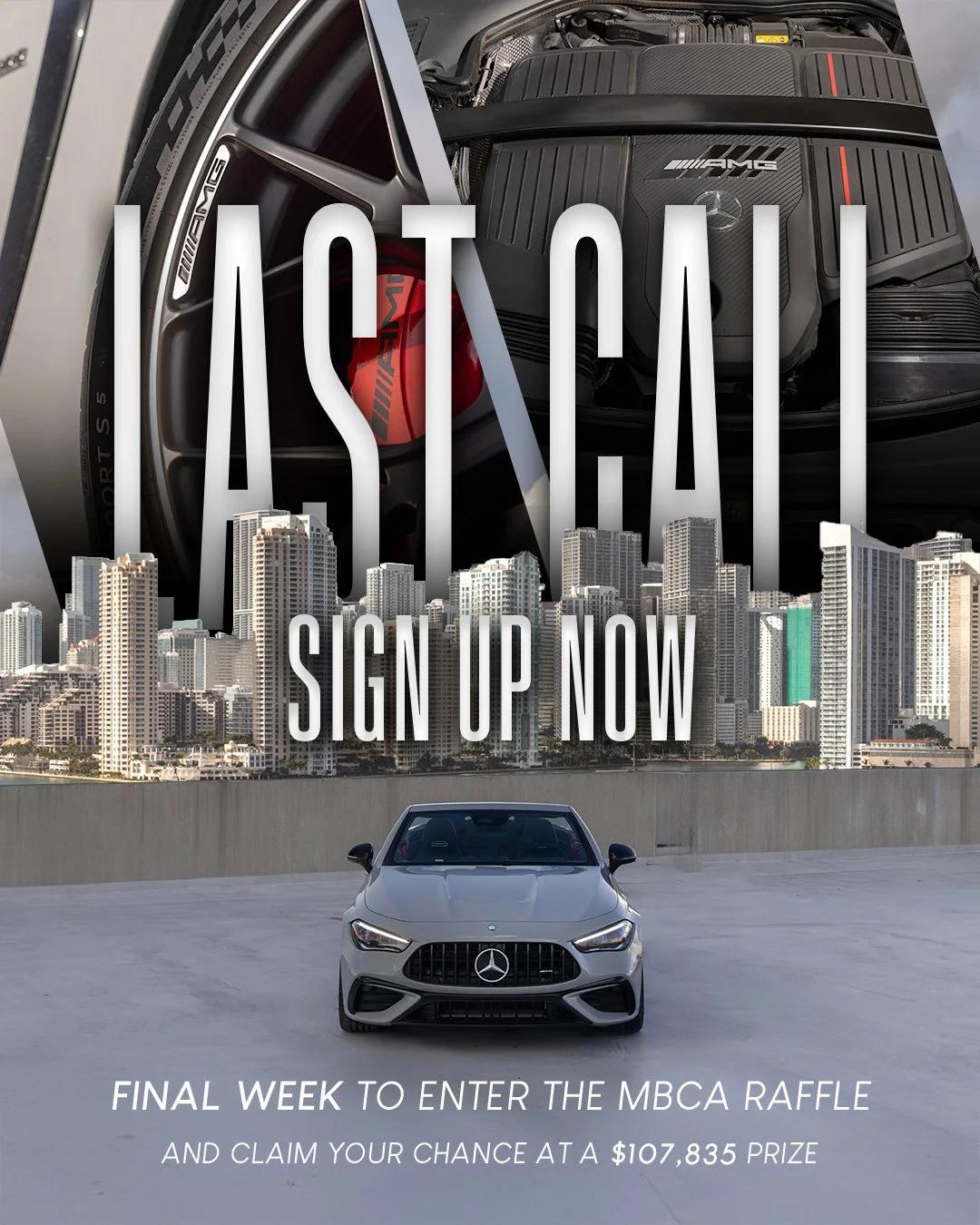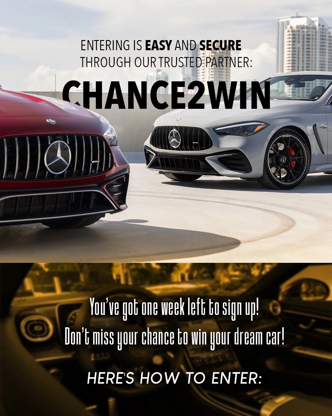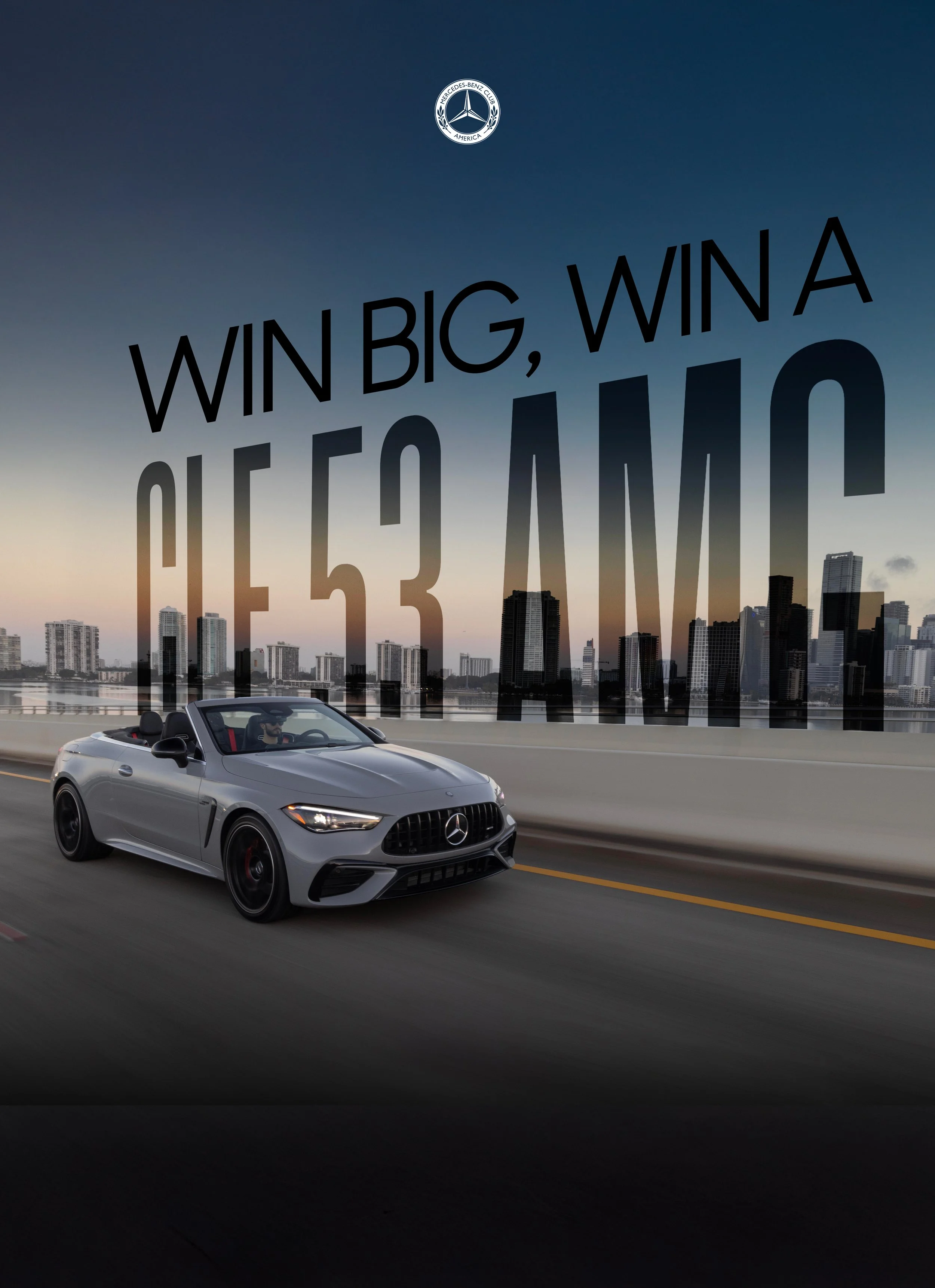 A digital campaign promoting a month-long raffle where participants could win a Mercedes CLE 53 AMG Convertible.